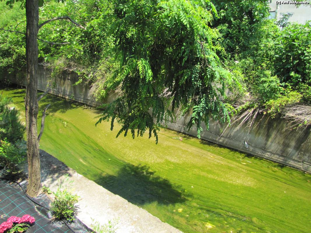 [P05] Este vedere de pe balcon, paraiasul ce trece prin spatele hotelului, este verde de la plantele acvatice.