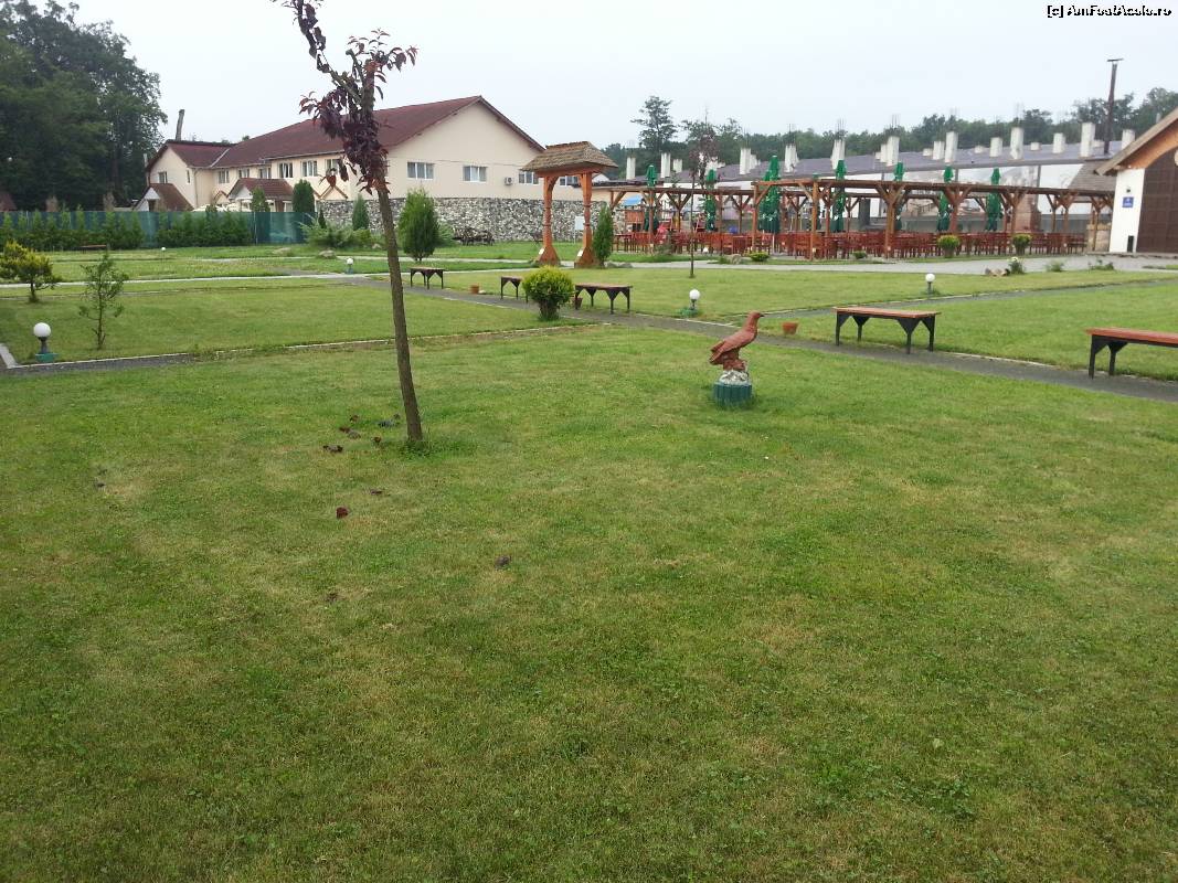 [P12] Curtea din spatele hotelului, alei, gazon, copaci, banci, decoruri, frumos!