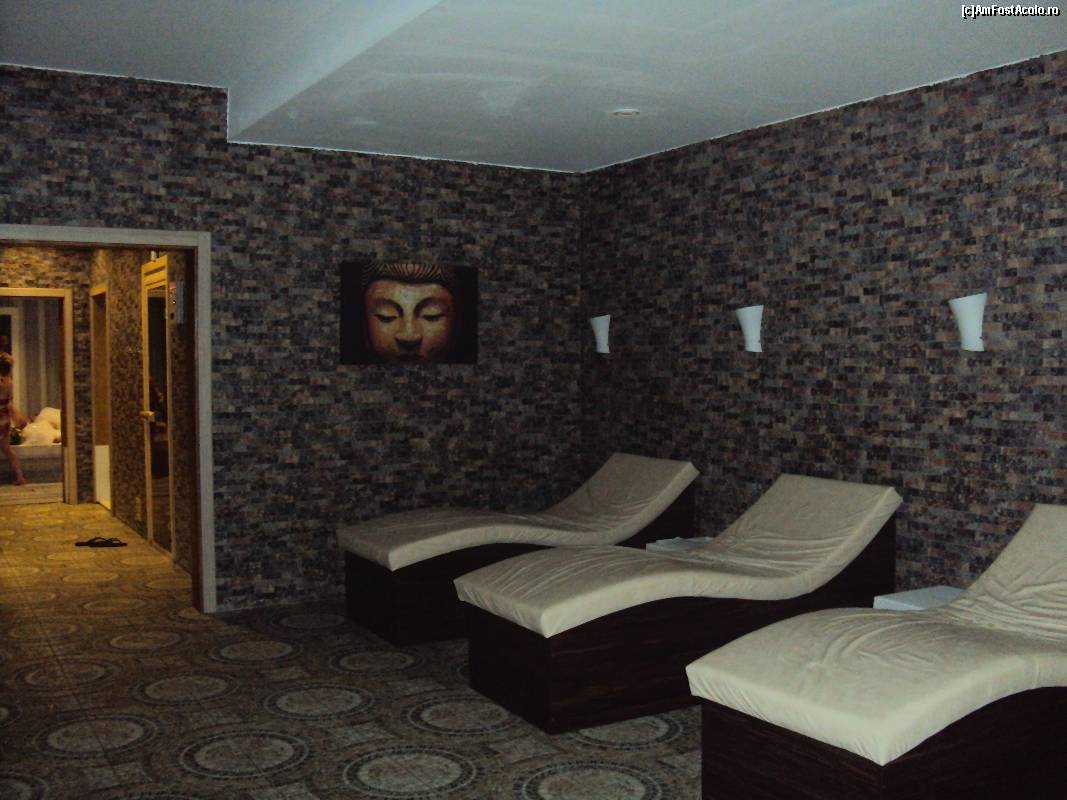 [P33] 33. ”Camera de relaxare” este singura în care am putut să fac o fotografie. Prima ușă din fundal este „sauna finlandeză”, a doua ușă este dușul, iar în fundul culoarului „hammam-ul” - baia turcească.