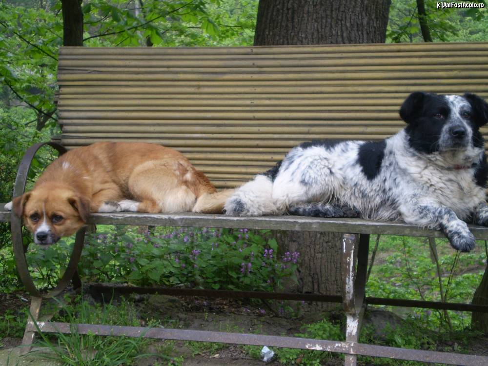[P11] Doi câini comunitari pe o bancă în parc în Herculane! Aşa-i că- drăguţi !?!!?