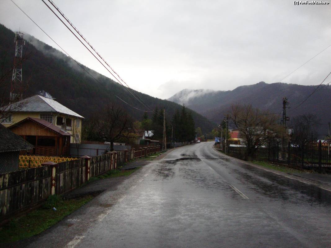 [P09] Am ajuns la intersecția cu drumul impracticabil spre Soveja. E păcat că încă nu se găsește o soluție pentru reabilitarea acestui drum. În plan îndepărtat, în partea dreaptă, sunt câteva buticuri de unde se pot cumpăra diverse suveniruri.