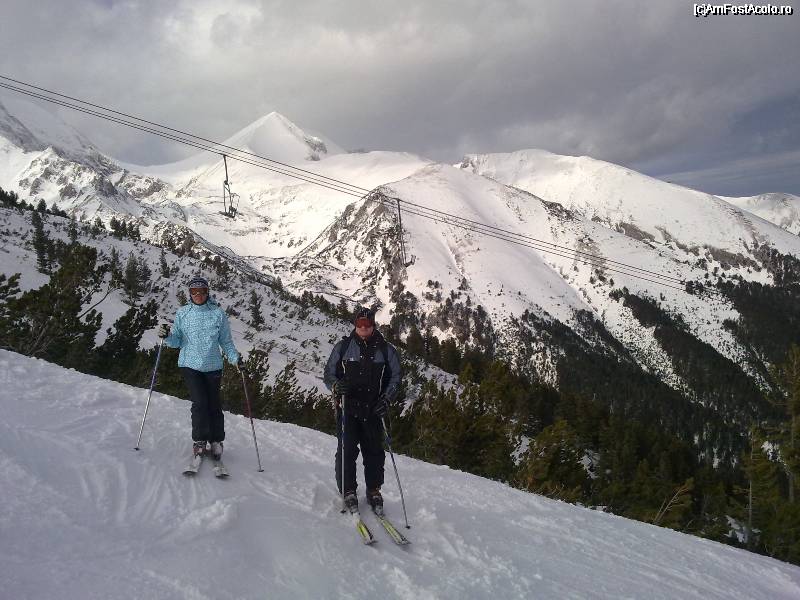 [P13] Partie foarte buna asigurata de tunurile de zapada , chiar daca in toata perioada in care am fost nu a nins in Bansko deloc.In imagine prietena mea buna impreuna cu "curajosul " meu sot , care desi nu practica schiatul de mult timp a coborat si pe partia Albert Tomba (partie cu bulina neagra adica dificila)!!!