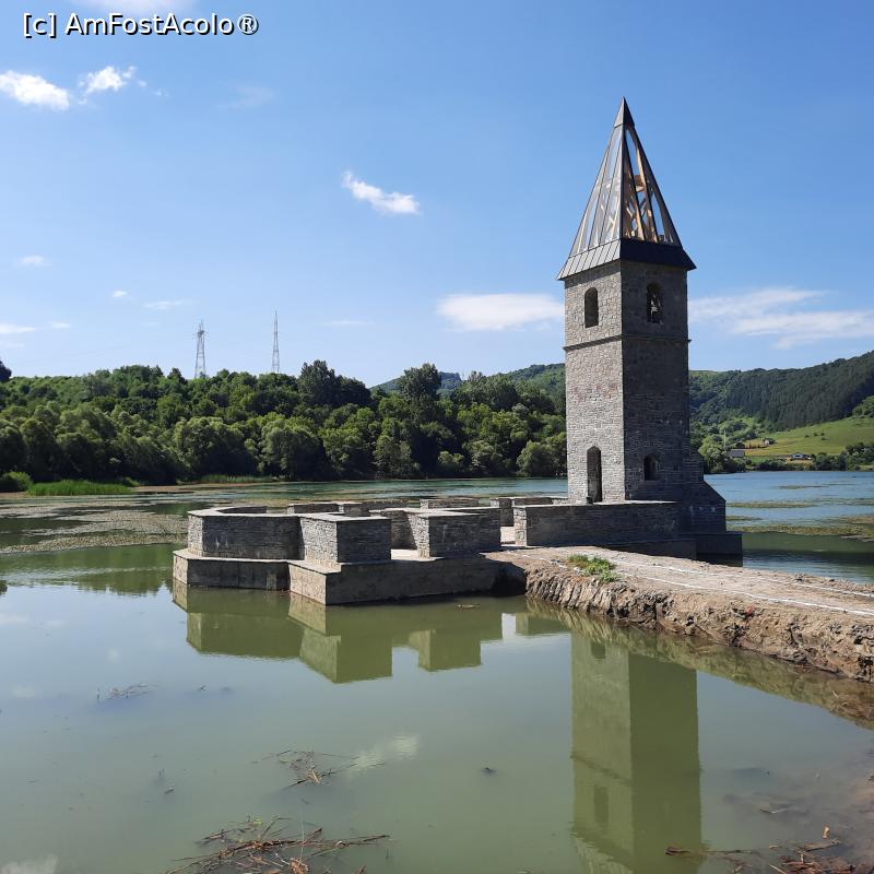 [P18] Bezidu Nou, jud. Mureș, Biserica Ecumenică, Turnul puternic domină Lacul de acumulare, se poate urca în el dar atunci era închis...