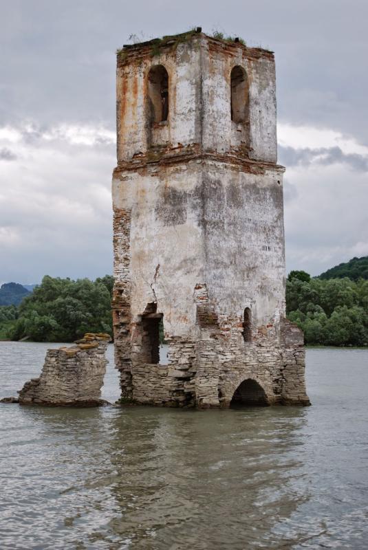 [P28] Bezidu Nou, Biserica Scufundată, Turnul înainte de anul 2014 când s-a prăbușit definitiv