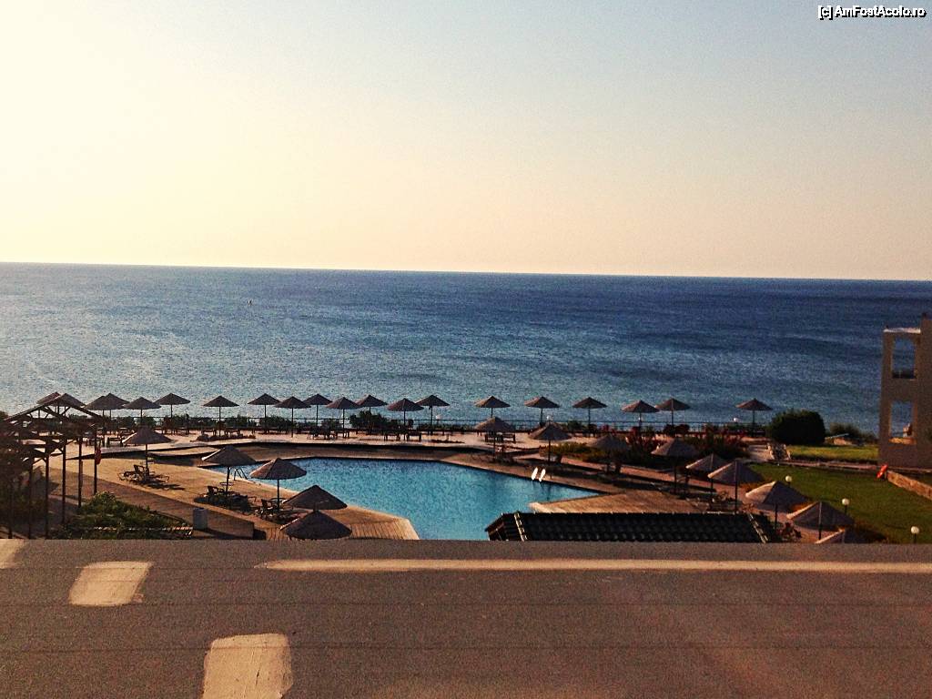 [P02] Imagine de la balconul camerei, a se vedea cât de aproape este plaja. Piscina şi o parte din acoperişul foişorului unde era zona de entertainment (bingo!)