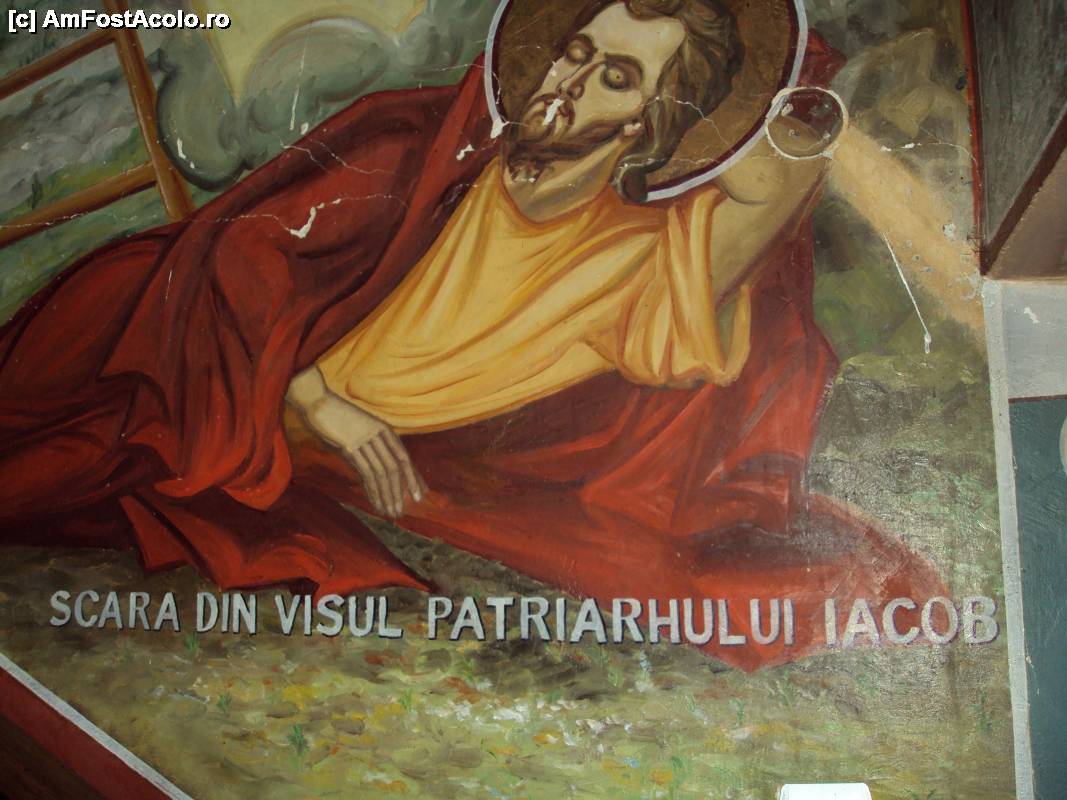 [P24] Pictură religioasă naivă pe zidul scării care urcă spre capela folosită de călugări în timpul regimului comunist.