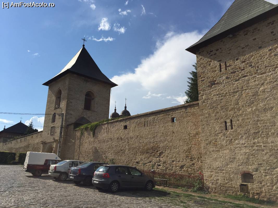 [P03] Zidul manastirii pe flancul unde este amplasat turnul clopotnita. Se vede si parcarea