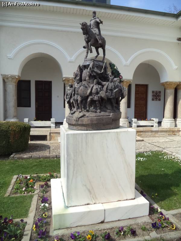 [P07] Manastirea Dealu - statuia lui Mihai Viteazu la intrarea in Manastire