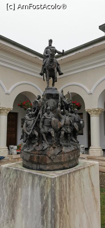 [P03] În faţa intrării în mănăstirea Dealu, bustul lui Mihai Viteazul
