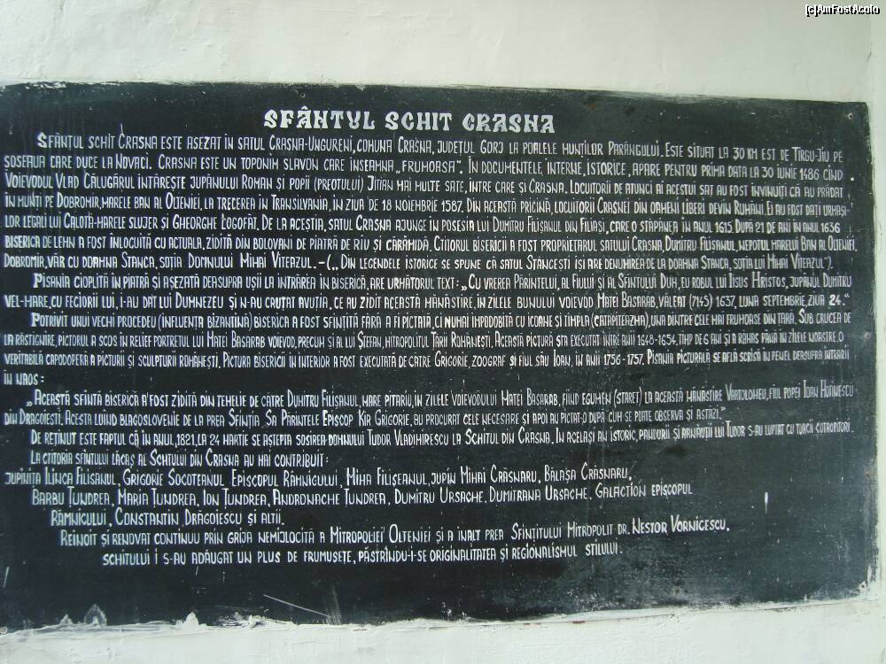 [P05] Mânăstirea Crasna – judeţul Gorj - pe peretele de la intrare , un scurt istoric al manastirii