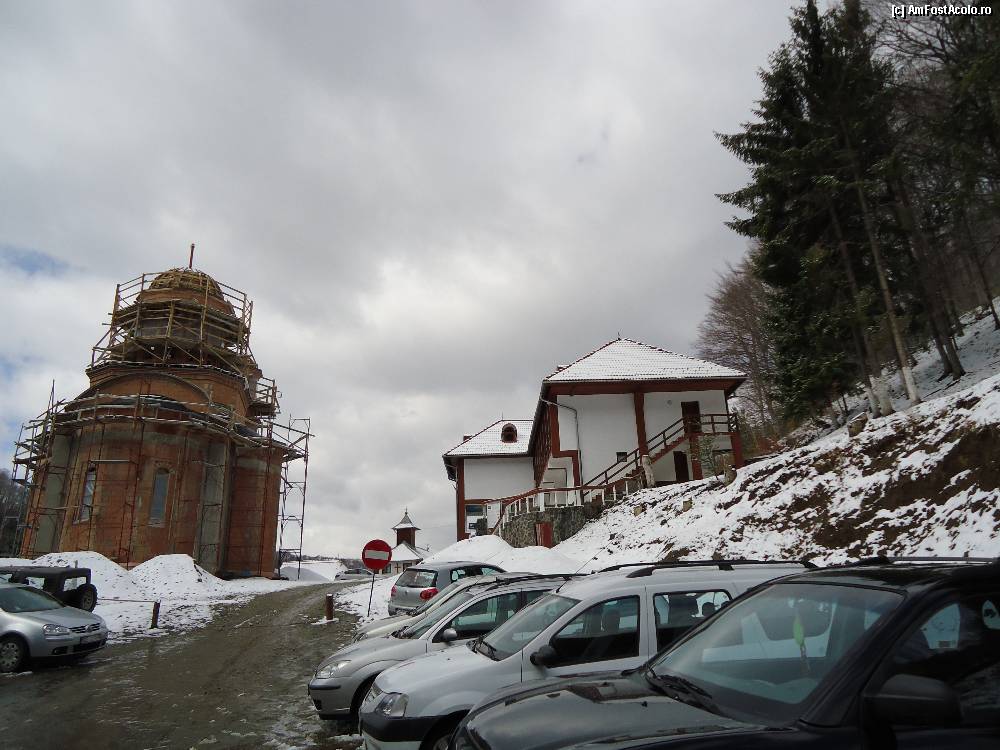 [P05] TURNU ROSU - Noua manastire, casutele celor care locuiesc acolo(2 persoane), parcarea si turla paraclisului