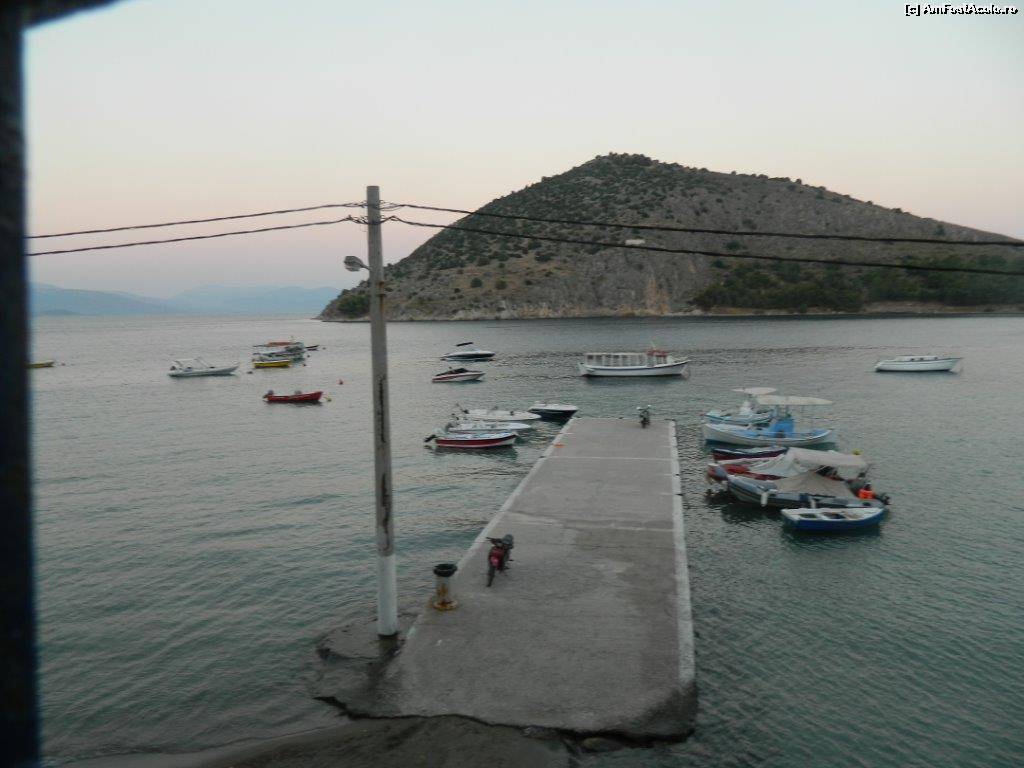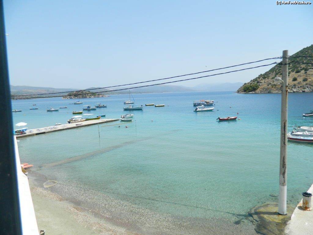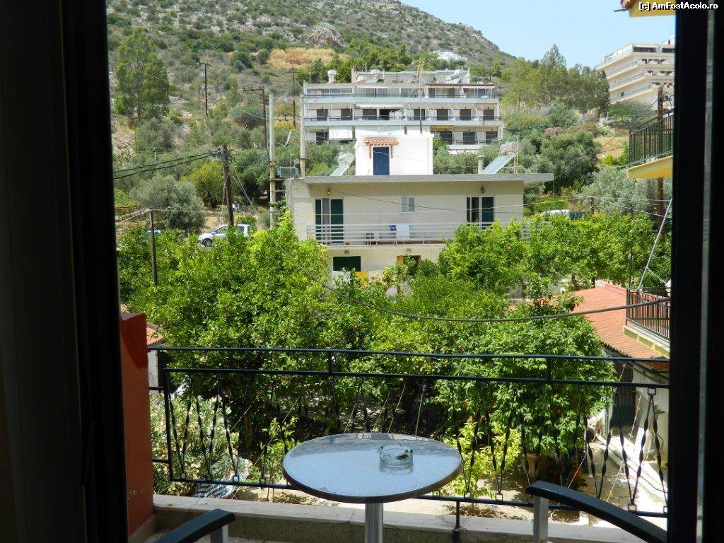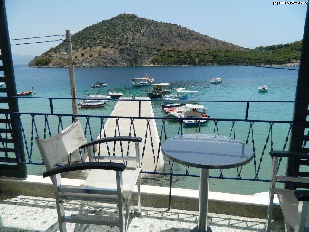 [P12] Vedere de pe balcon. Mantalena (vaporul cu care am fost în Spetses și Hydra) în spate pare mult mai micuț decât în realitate.