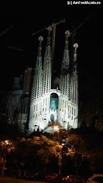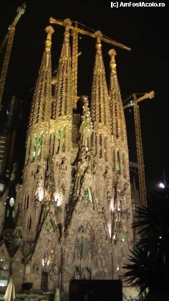 [P228] Sagrada Familia, Fatada Nasterii, luminata noaptea. Duminica Over.