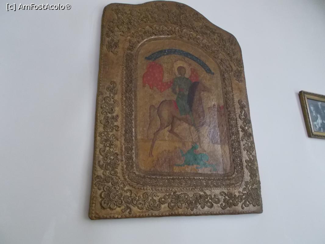 [P04] Icoana Sf. Gheorghe, așezată deasupra patului.