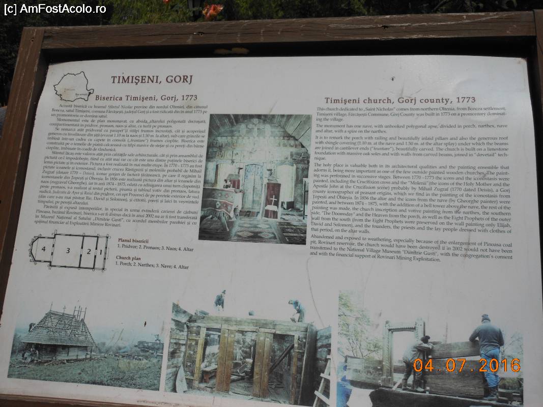 [P64] Muzeul Satului - București. Panou informativ la Biserica de lemn Timișeni (Gorj).