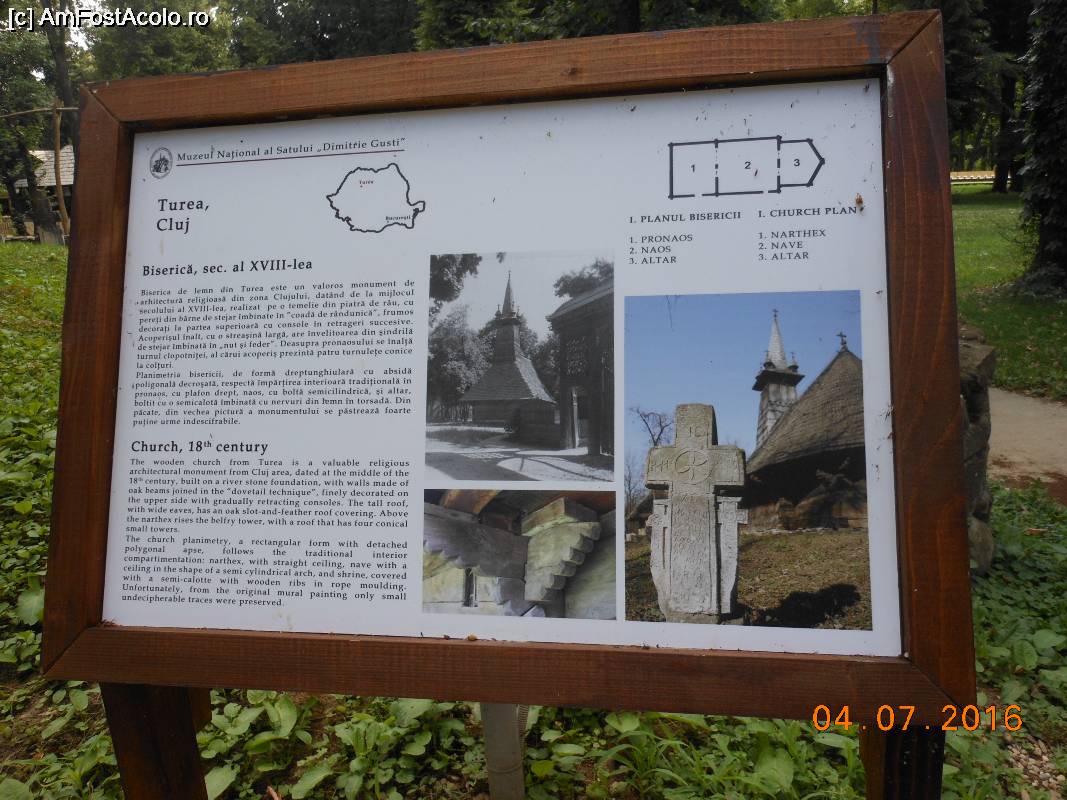 [P65] Muzeul Satului - București. Panou informativ la Biserica de lemn Turea (Cluj).