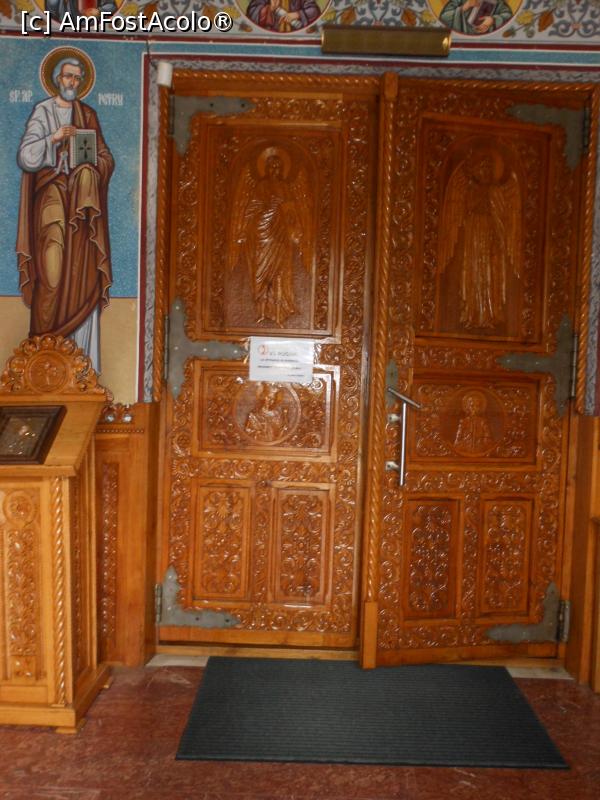 [P15] Mănăstirea Ciolpani - Buhuși. Biserica mare, ușa sculptată.
