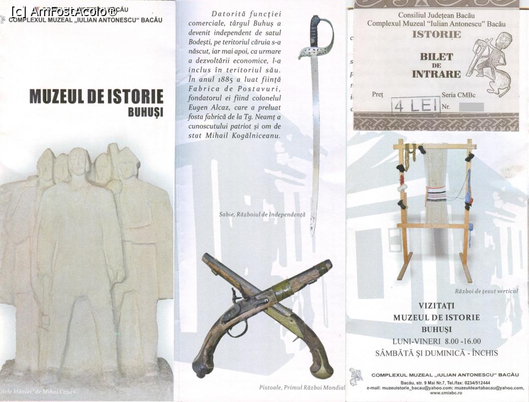 [P22] Pliant și bilet de intrare - Muzeul de Istorie din Buhuși.
