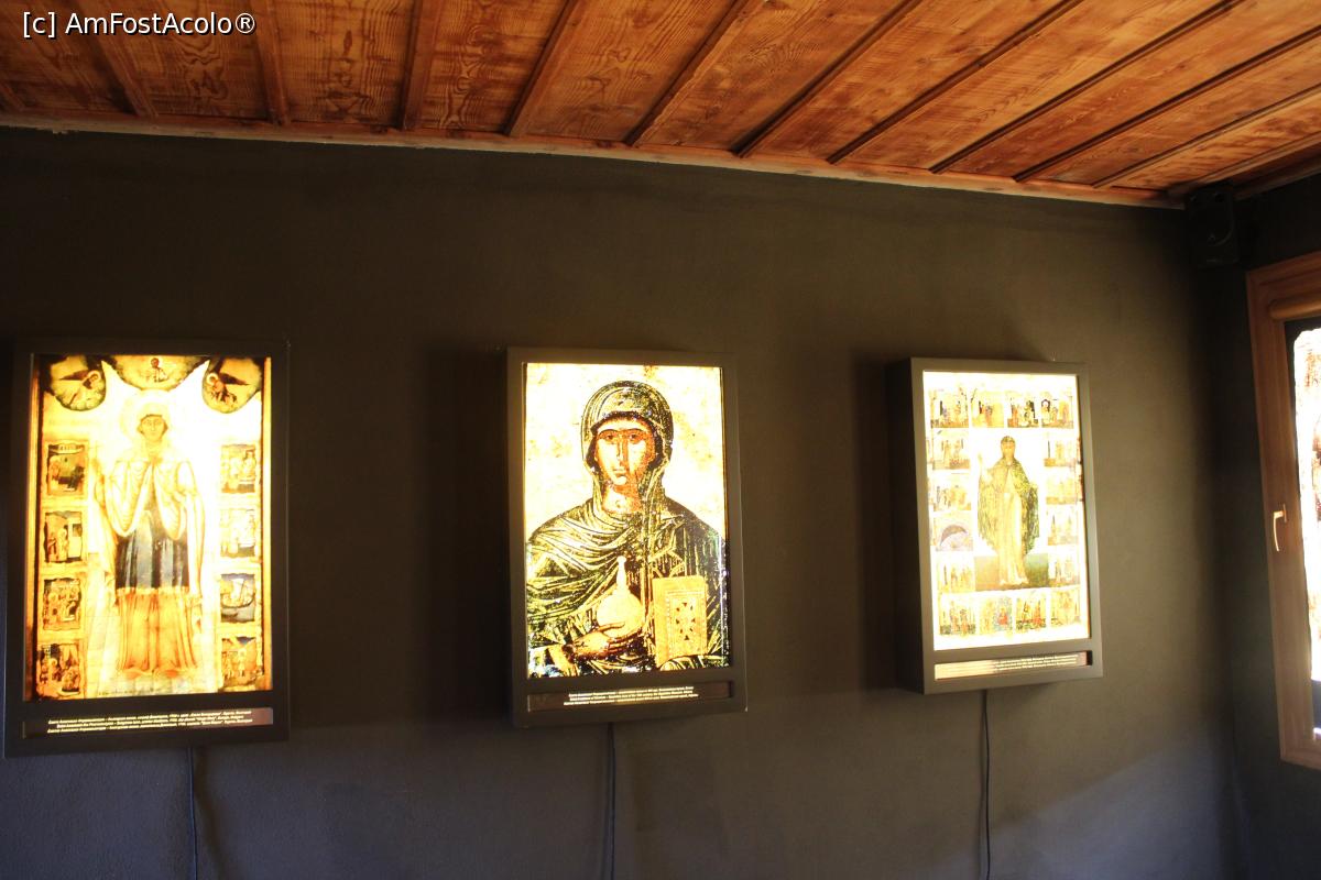 [P26] Burgas, Insula Sf. Anastasia, Muzeul, Sala Sf. Anastasia Farmacolitria, Icoane ale Sfintei, în centru copia celei din Sankt Petersburg