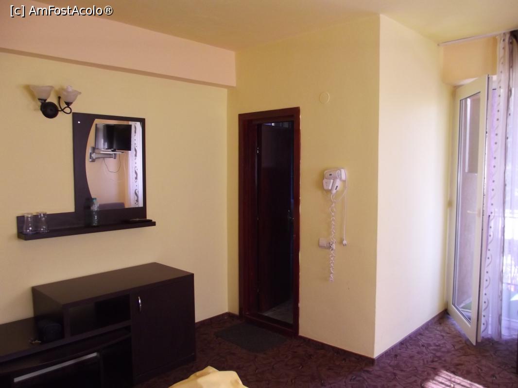 [P03] Camera in care am fost cazati (dulapul in care se afla un minifrigider si usa de la baie, langa care era un foehn pentru uscat parul)