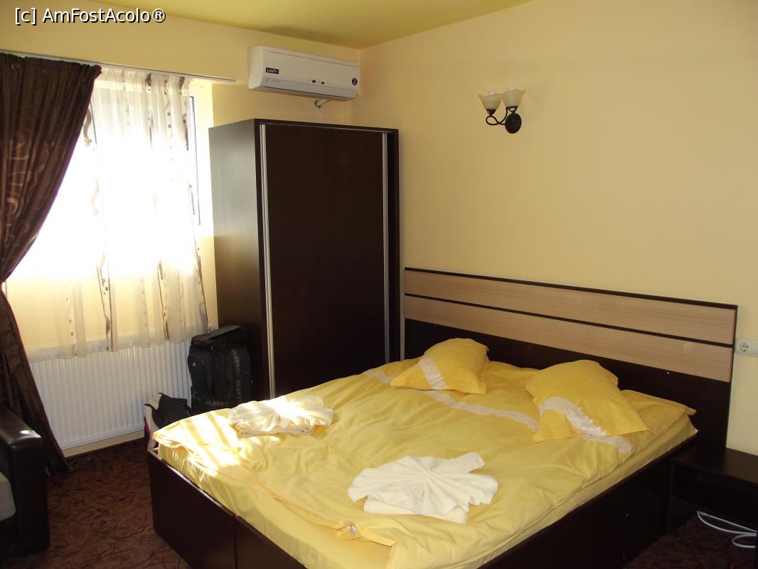 [P05] Camera in care am fost cazati (patul matrimonial si un sifonier destul de generos, multe rafturi, destule umerase, deasupra aerul conditionat)