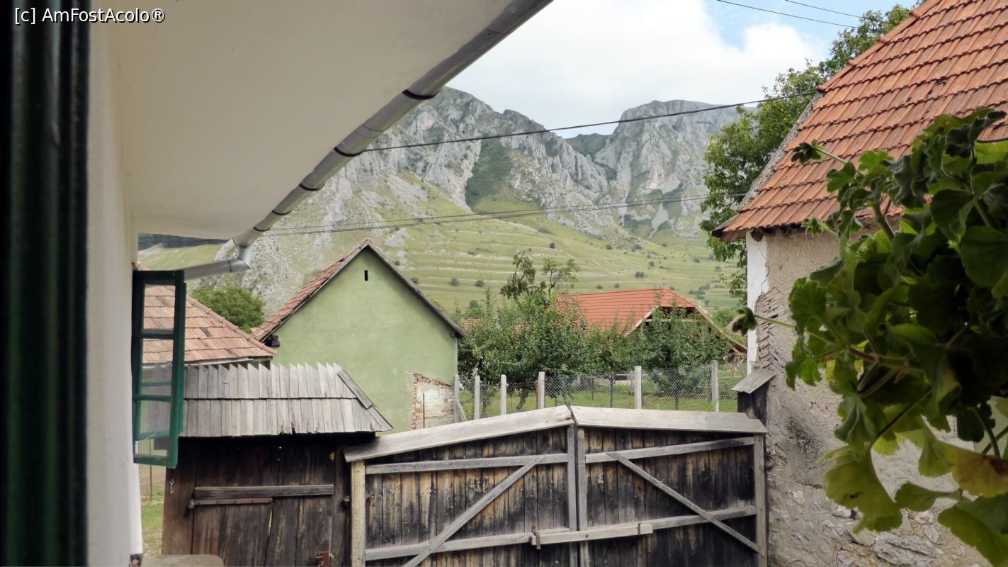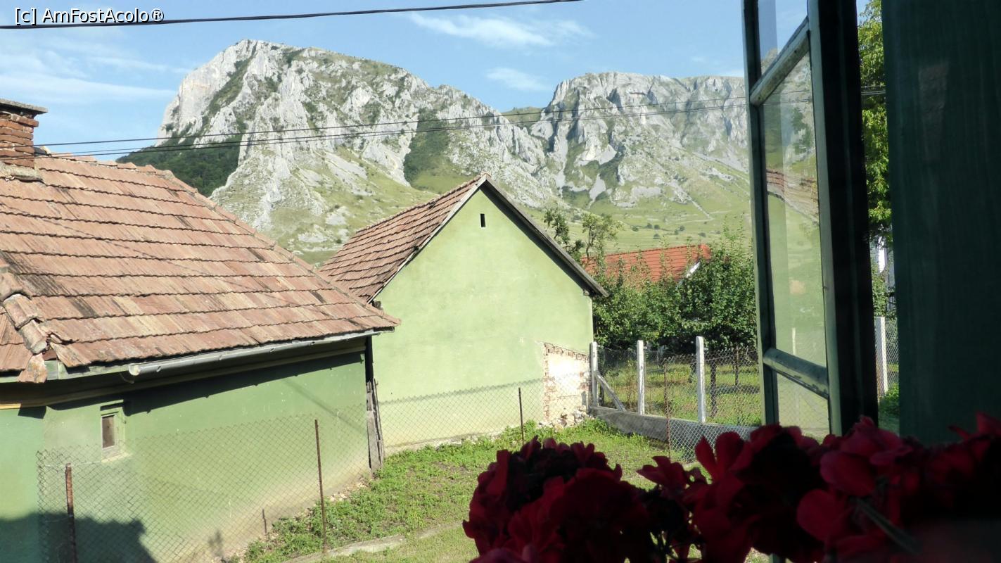 [P08] Piatra Secuiului (cu Colții Trascăului în stânga) văzute de la fereastra cu mușcate a Casei Zabos