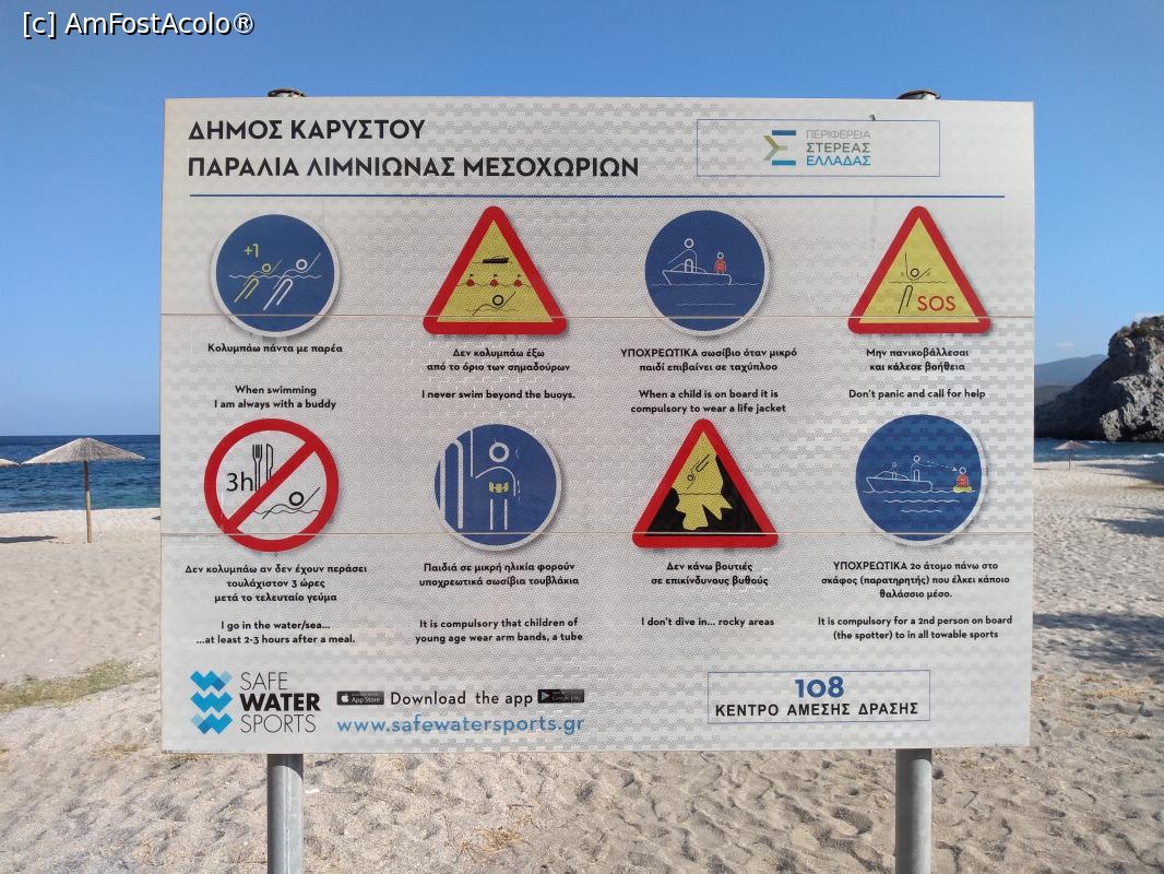 [P25] Plaje din sudul Eviei - Limnionas Mesochoria, reguli de respectat pe plajele Greciei (astfel de panouri sunt puse la fiecare plajă)