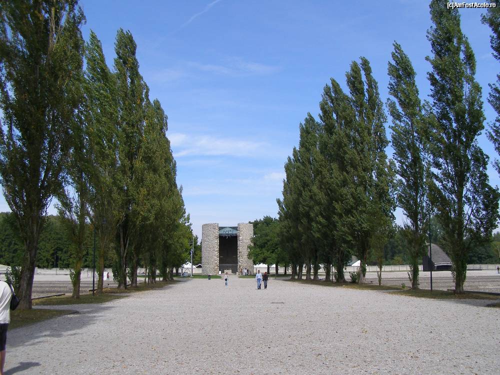 [P41] Memorialul de la Dachau - Aleea cu plopi - vedere catre Capela Catolica