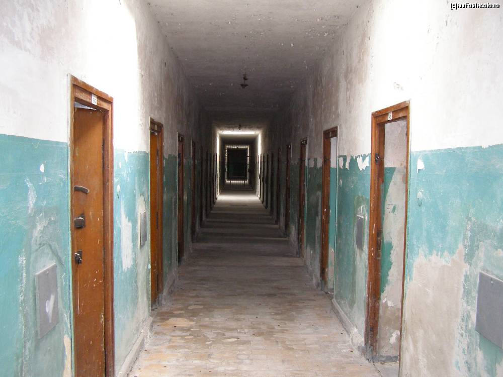 [P46] Memorialul de la Dachau - Holul fostei inchisori, cu celulele de-o parte si de alta