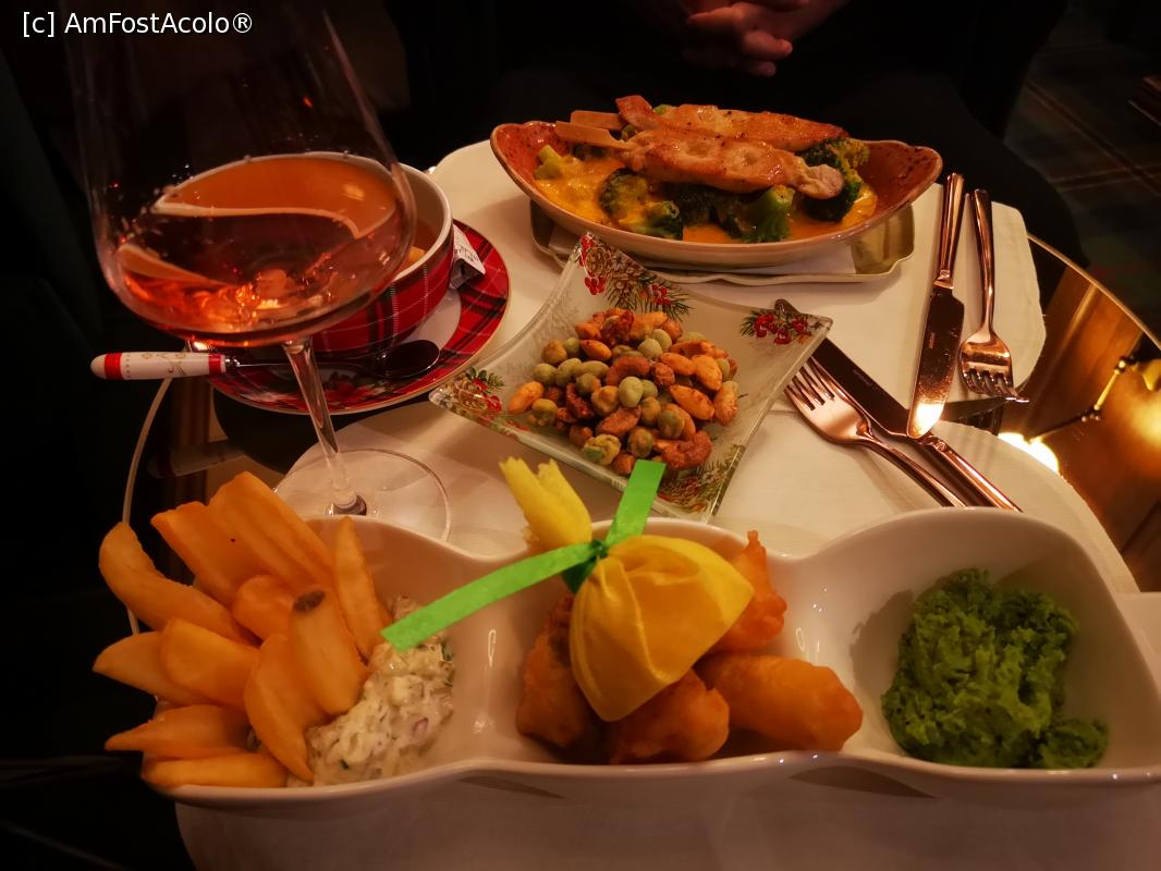 [P10] În prim plan, fish&chips reinterpretați. La mijloc, bolul cu mieji glazurați.