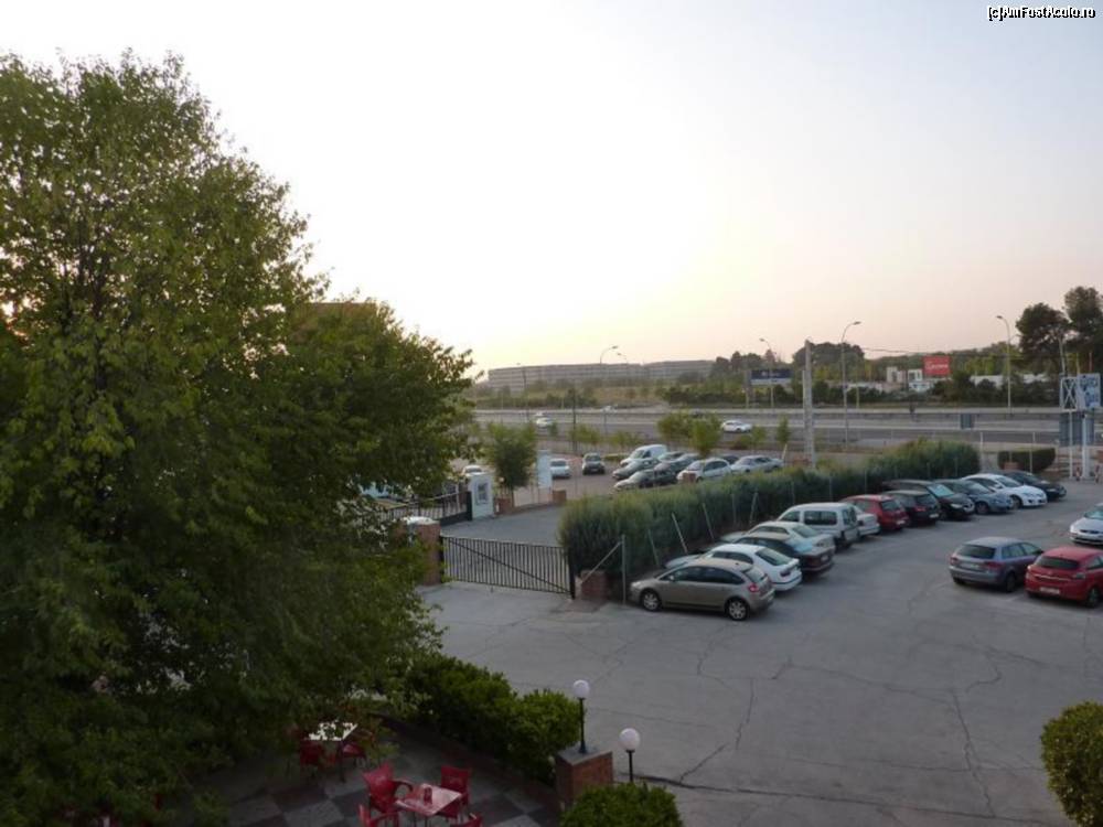 [P10] parcarea hotelului si unul din multele microbuze ce fac transferul catre si de la aeroport.