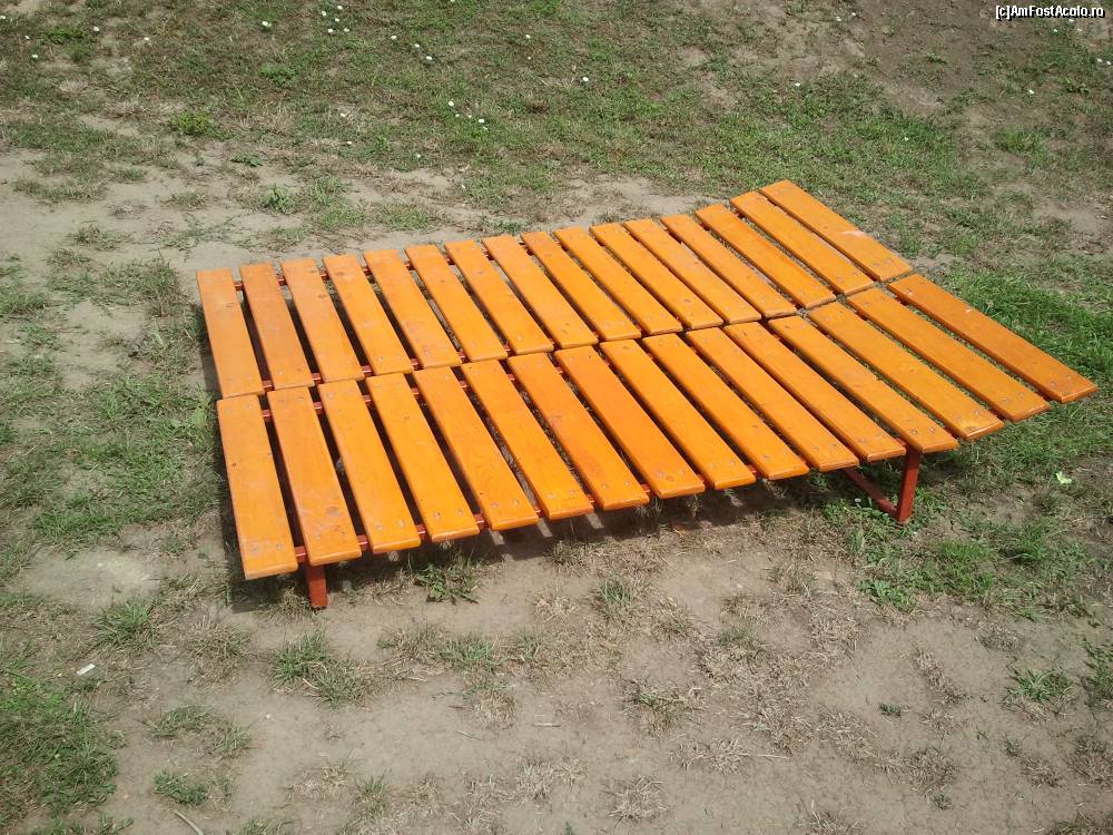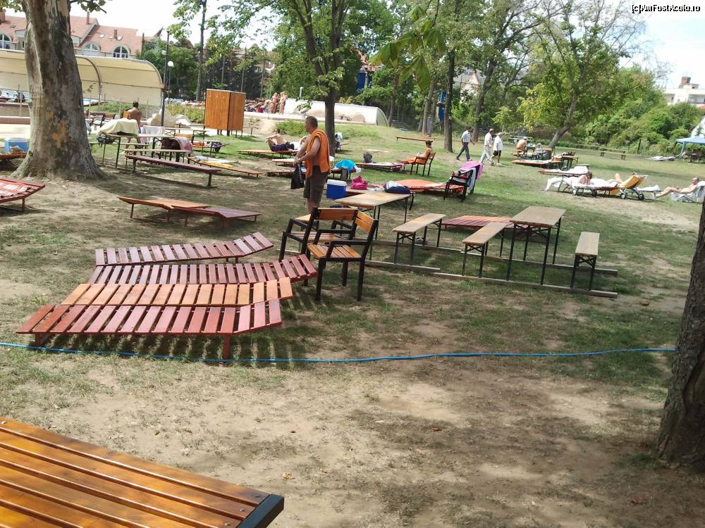 [P22] Ştrandul - Termalliget - Berettyoujfalu: şezlongurile gratuite din lemn, pe schelet metalic.