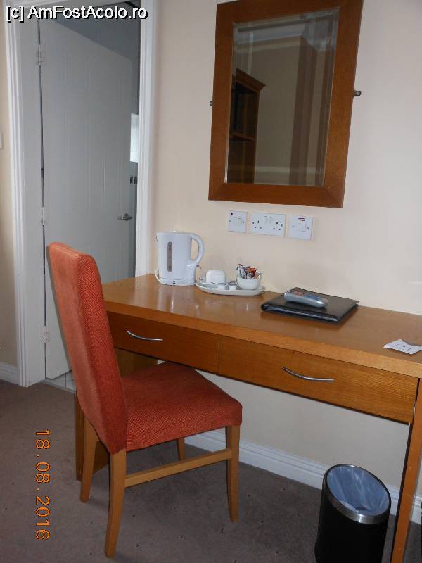 [P10] The Pier Hotel - Camera 217. Pe birou, serviciul de ceai/cafea.