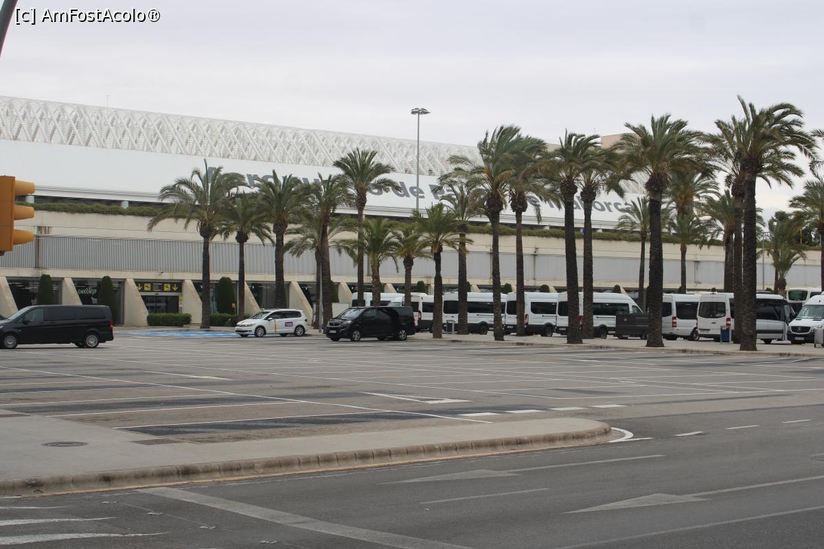 [P56] Mallorca, Palma de Mallorca, Aeroportul, Autobuzul A1 ce merge la Palma de Mallorca așteaptă, noi îl așteptăm pe A2 ce merge la Playa de Mallorca și Arenal