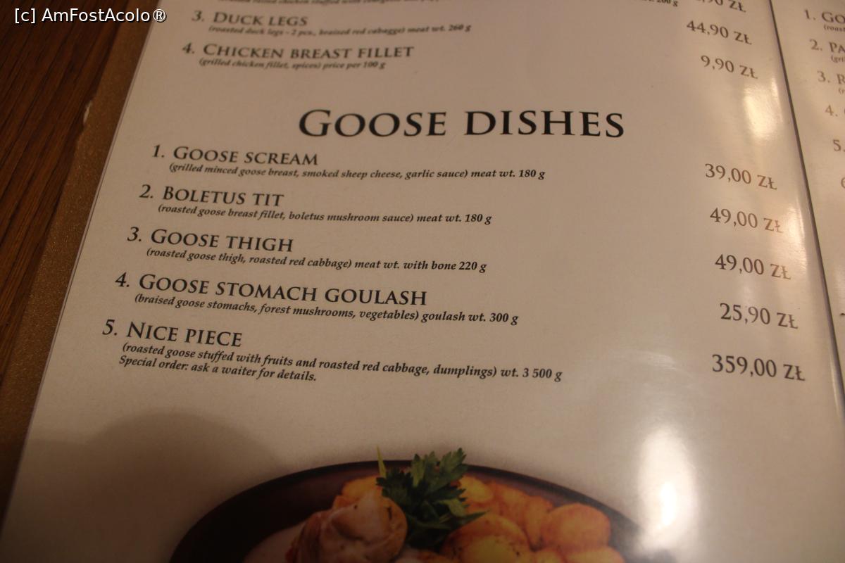 [P21] Toruń, Karczma „Gęsia Szyja”, Meniul, Mâncăruri din Carne de Gâscă
