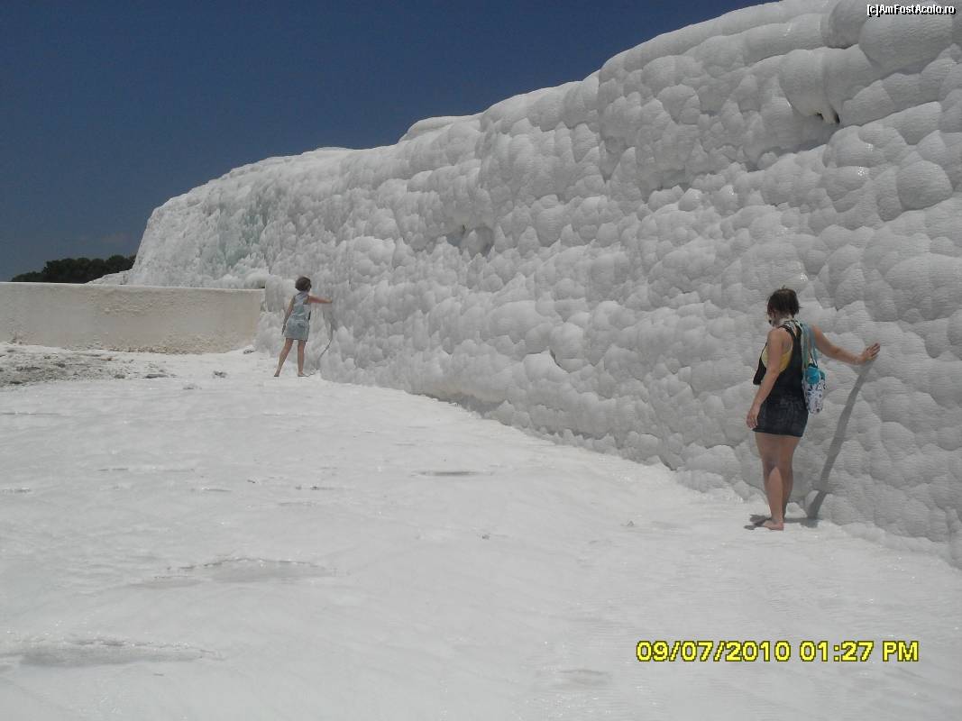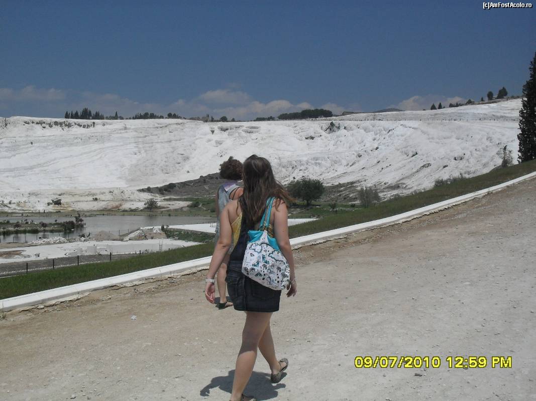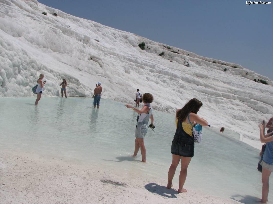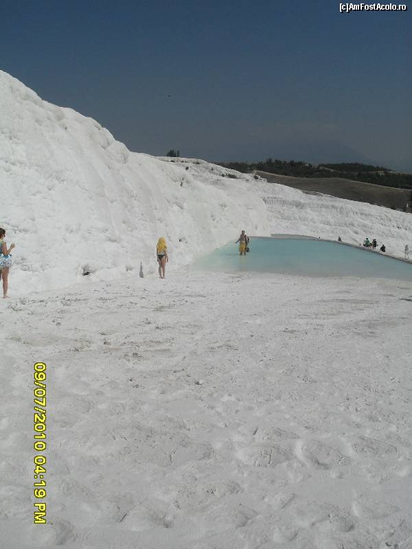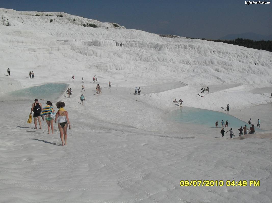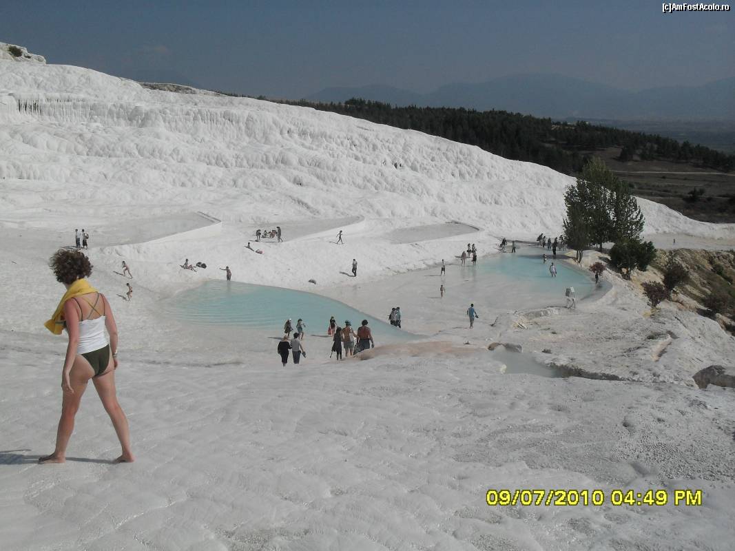 [P19] Muntele acoperit de calcar la Pamukkale si bazinele cu apa termala calda.