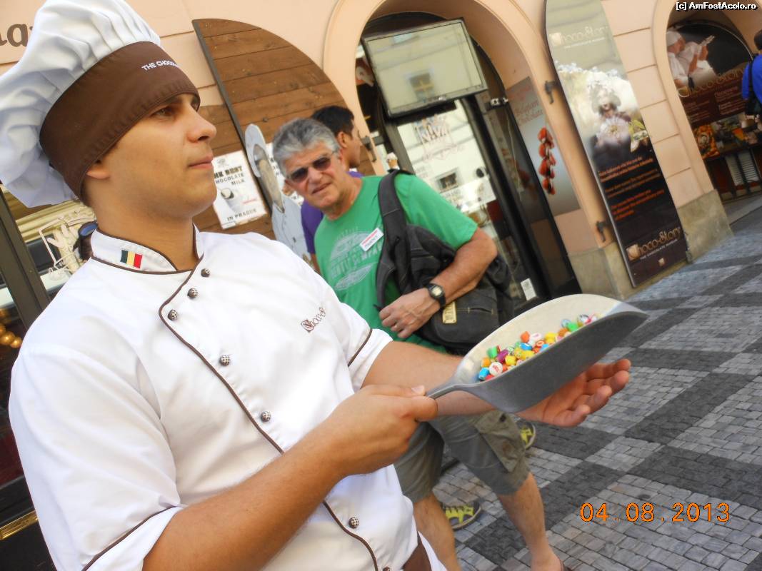 [P06] Praga - Piaţa Primăriei. Poftiţi, gustaţi şi degustaţi! Ce-o fi cu steguleţul de pe gulerul lui?