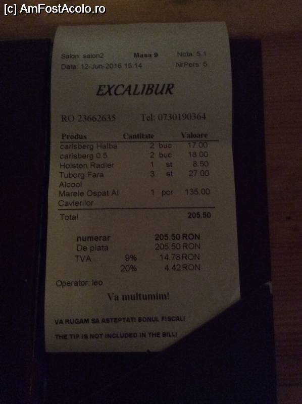 [P30] Restaurantul Excalibur - si nota de plata