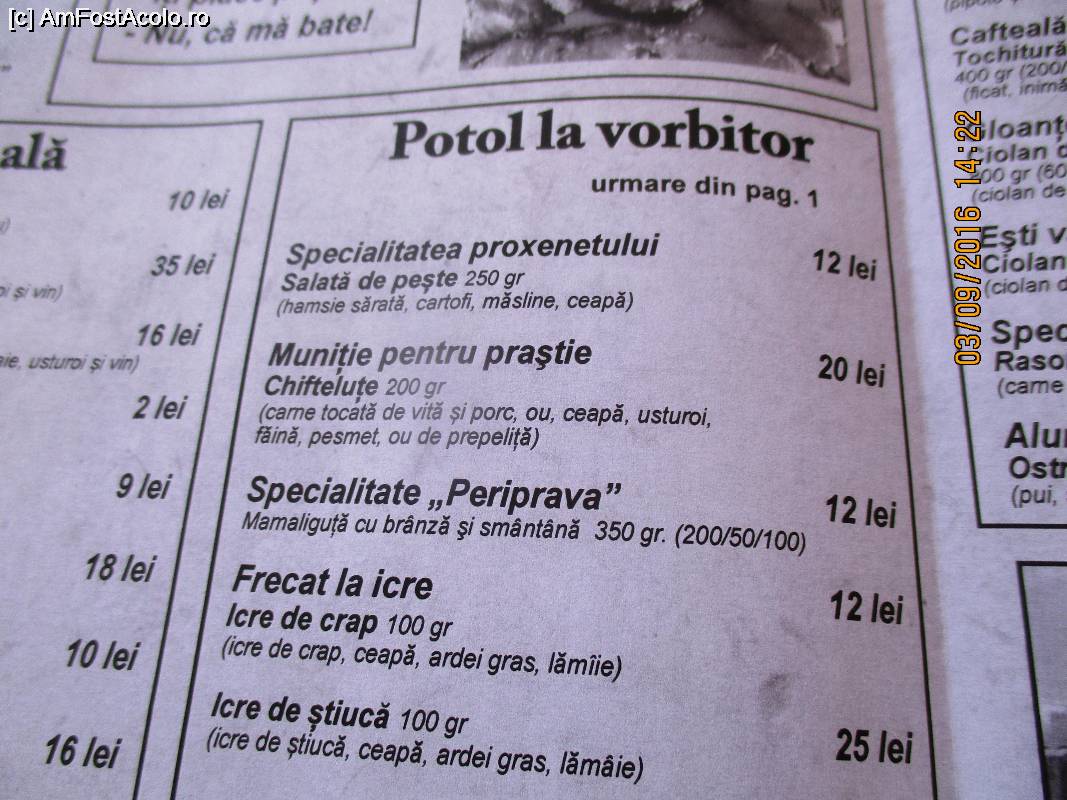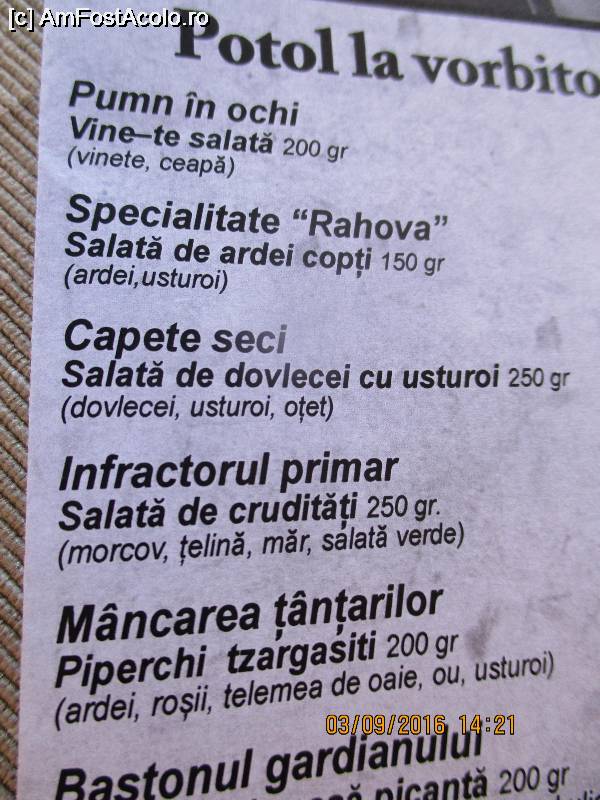 Afișate [441 - 460] din total 585 FOTOGRAFII Unde mâncăm în Constanța și împrejurimi / CONSTANȚA [ROMÂNIA]