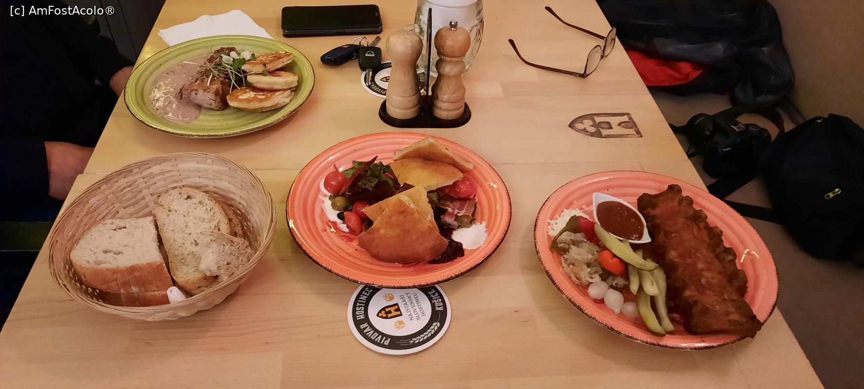 ![[P17] Košice, Hostinec Pivovar (Hanul Fabrica de Bere), Masa noastră cu Mușchi de porc la grătar, Coaste de porc la cuptor și Salată colorată de roșii » foto by mprofeanu