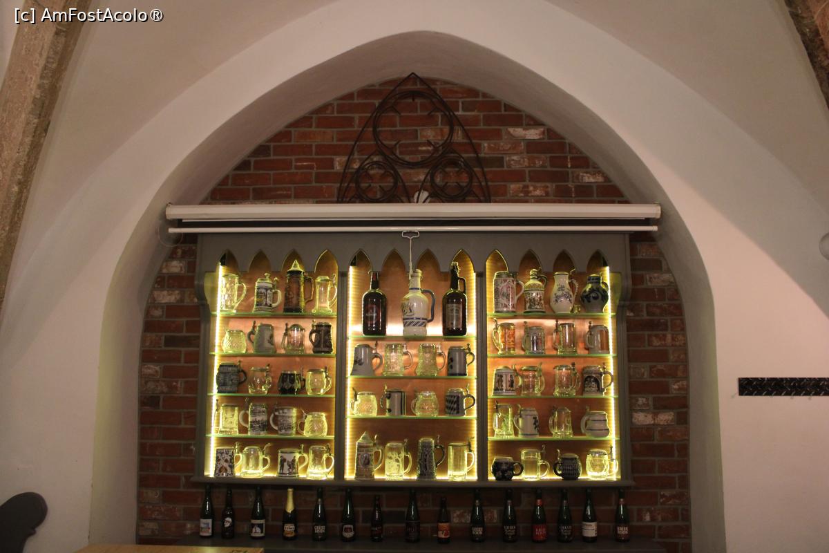 ![[P08] Košice, Hostinec Pivovar (Hanul Fabrica de Bere), Vitrina cu Halbe și Sticle de bere folosite în han » foto by mprofeanu