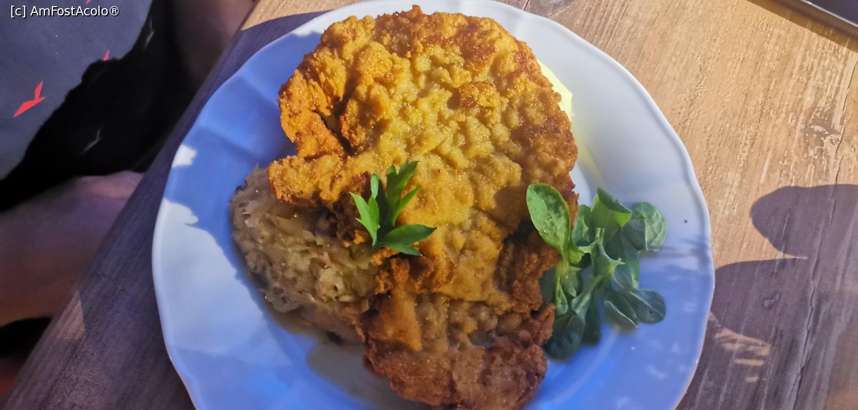 [P06] Schabovy, la Med Malina, un șnițel de porc cu piure și varză, care erau dedesupt.