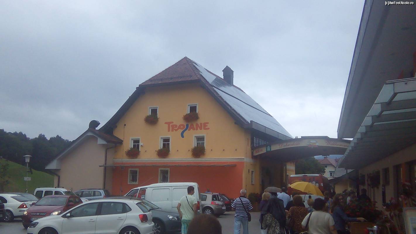 [P05] Spatele restaurantului Trojane, unde este o parcare destul de spatioasa, Slovenia
