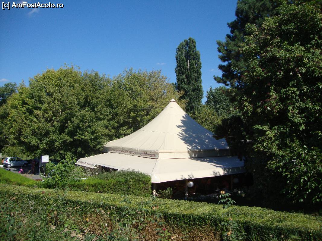 [P03] Se observă terasa exterioară acoperită a restaurantului Milenium; probabil că la final de săptămână în această locație se organizează nunți, botezuri sau alte evenimente de acest gen.