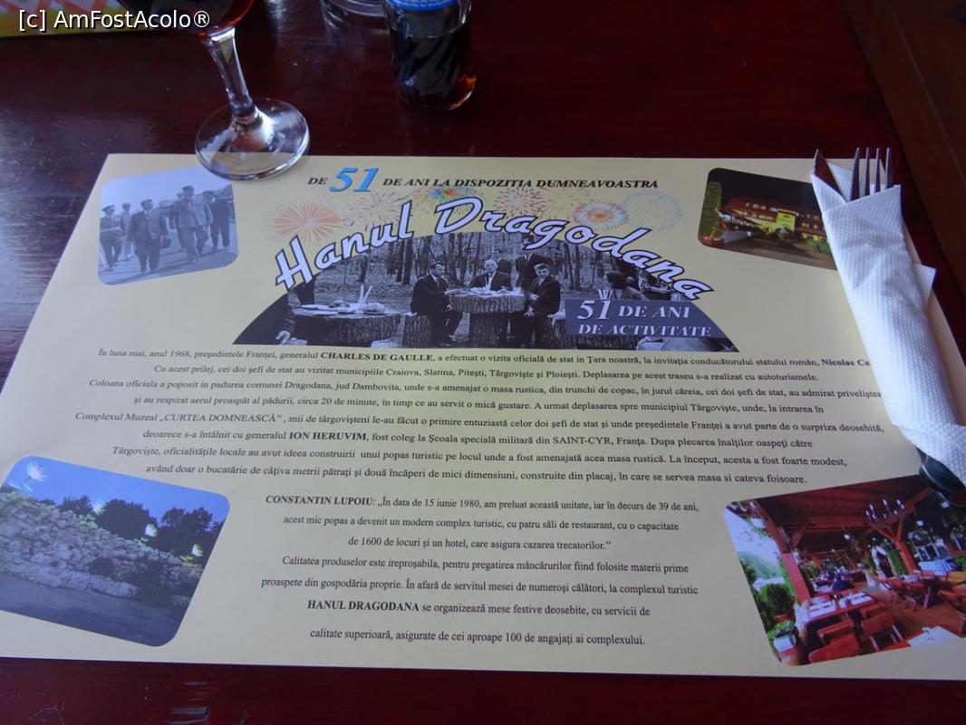 [P09] Suport de farfurii din hârtie - conține un scurt istoric al locului și fotografii exemplificatoare - Hanul Dragodana.