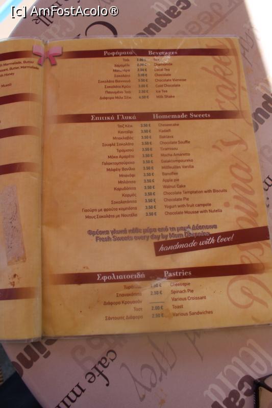 [P16] Khóra Sfakíon, Patiseria Cafenea Despina, Meniul, Cafea, Mic dejun
