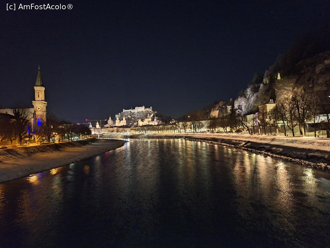 [P22] Salzburg vedere nocturna de pe un pod peste raul Salzach