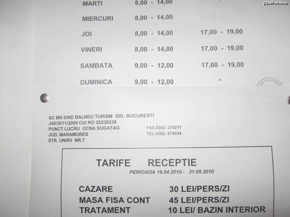 [P12] Tarifele de la cazare, masa, tratament si orarul bazinelor cu apa sarata de la hotelul "Salina"