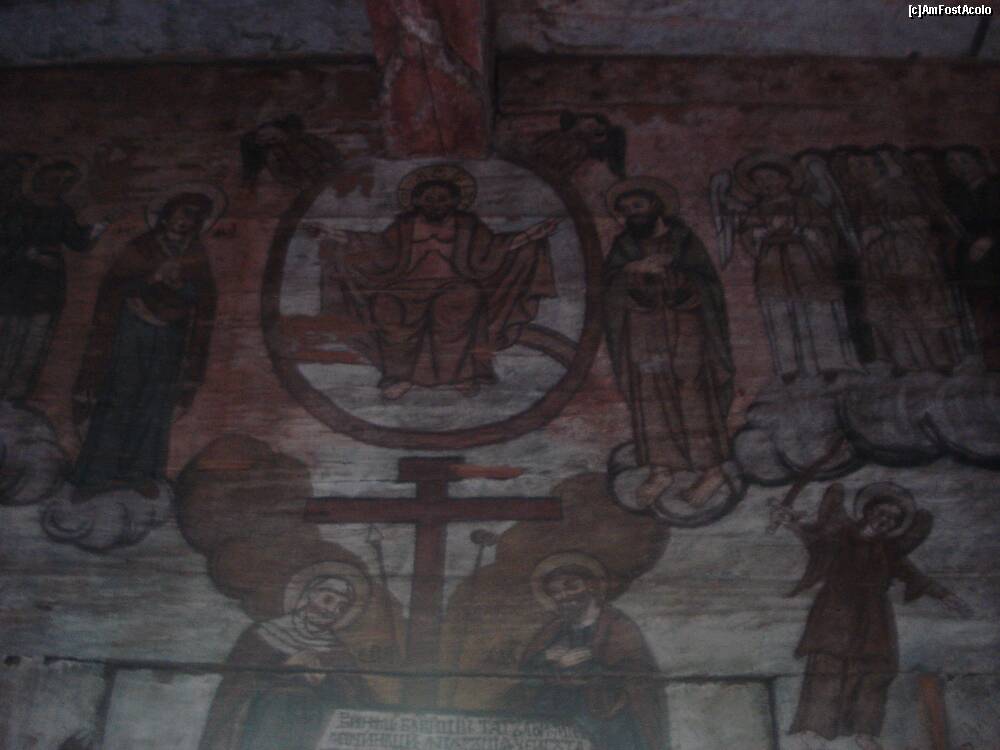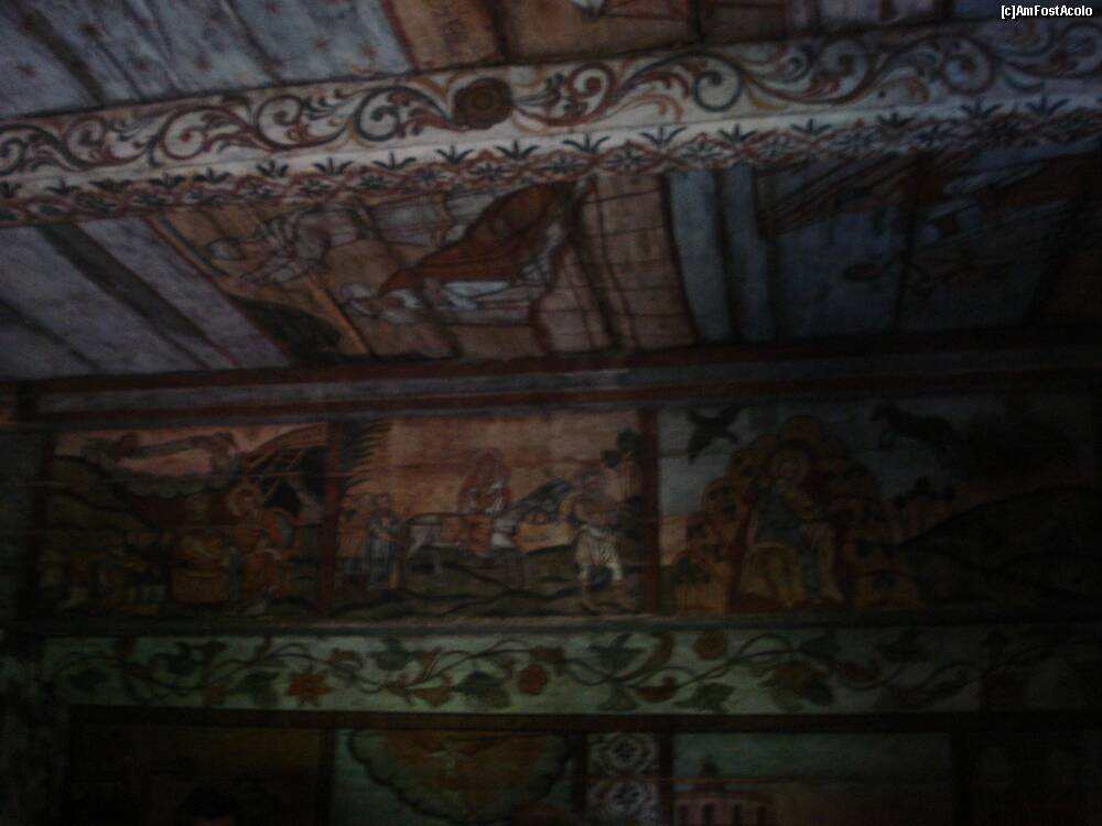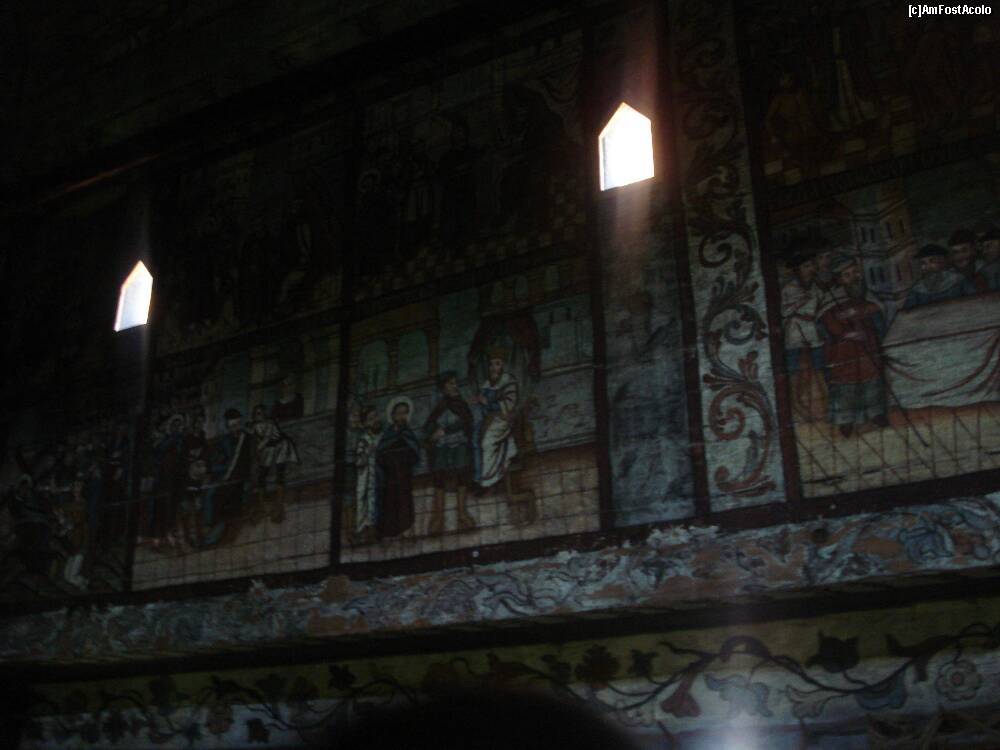 [P07] Desene si picturi cu scene biblice pe peretii de lemn in interiorul bisericii de lemn Sf. Nicolae din com. Bogdan Voda