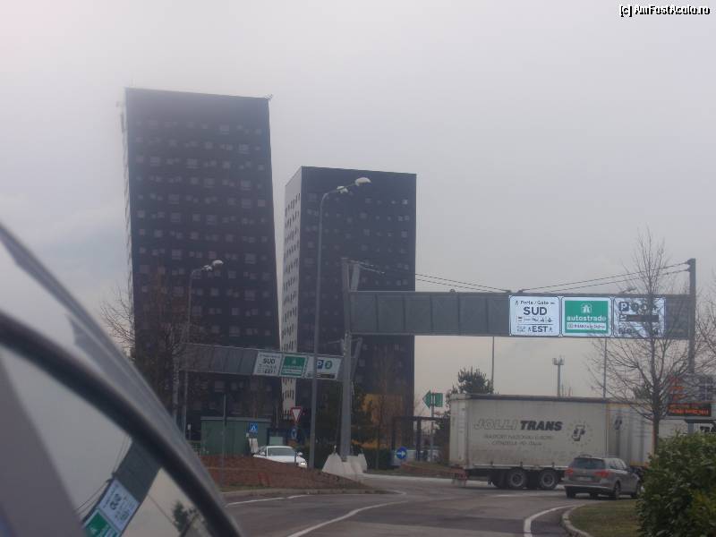 [P03] Milano,, in apropiere de Fiera, cele doua cladiri asa sunt construite, stramb..Erau bleu si absolut toate geamurile acoperite cu violet..